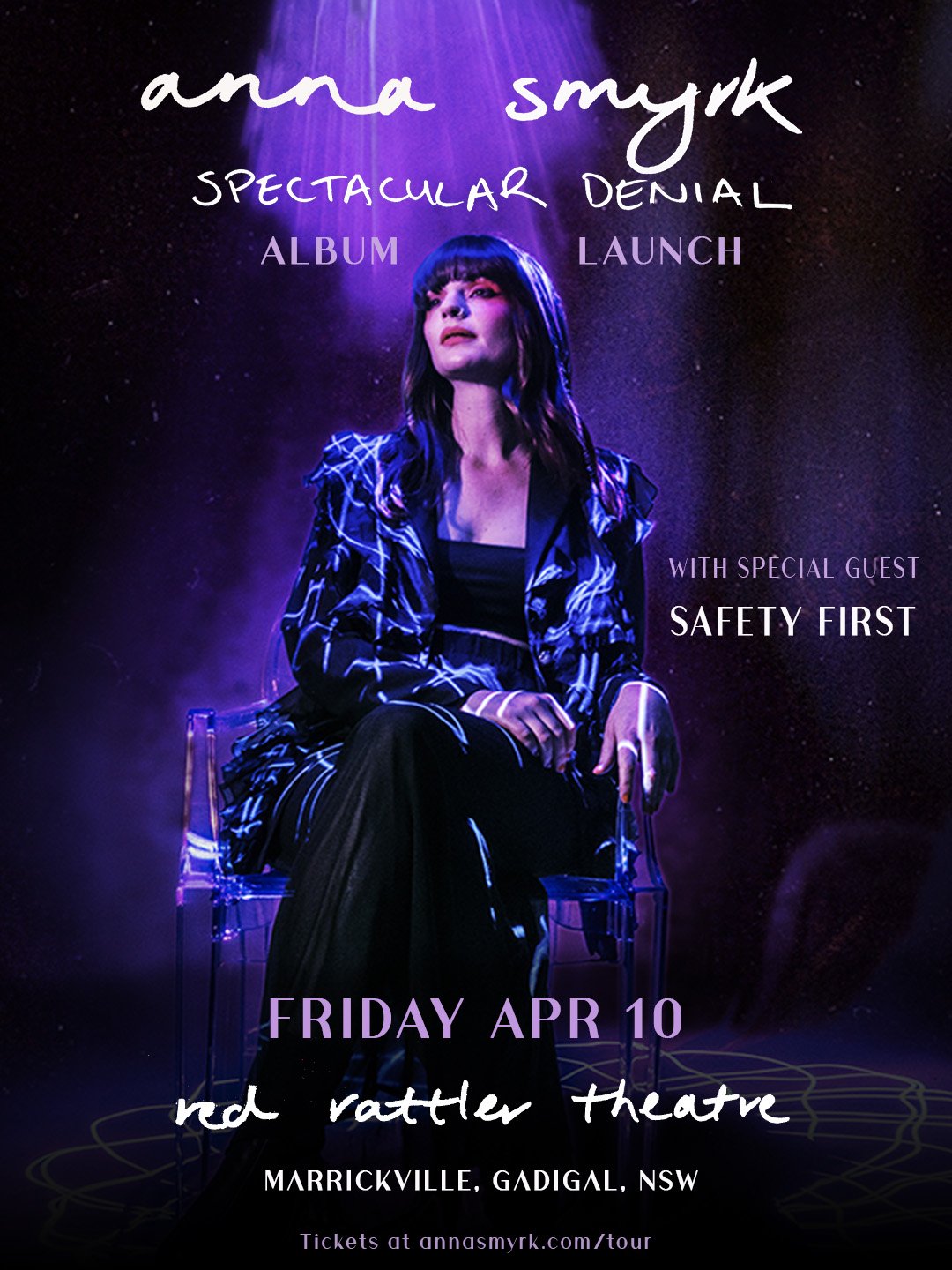Anna Smyrk launches her stunning debut album, Spectacular Denial, with a full band show. With songs ranging from heartbreakingly vulnerable folk ballads to 90s grunge bangers, this show will take you right into your feels and back again.