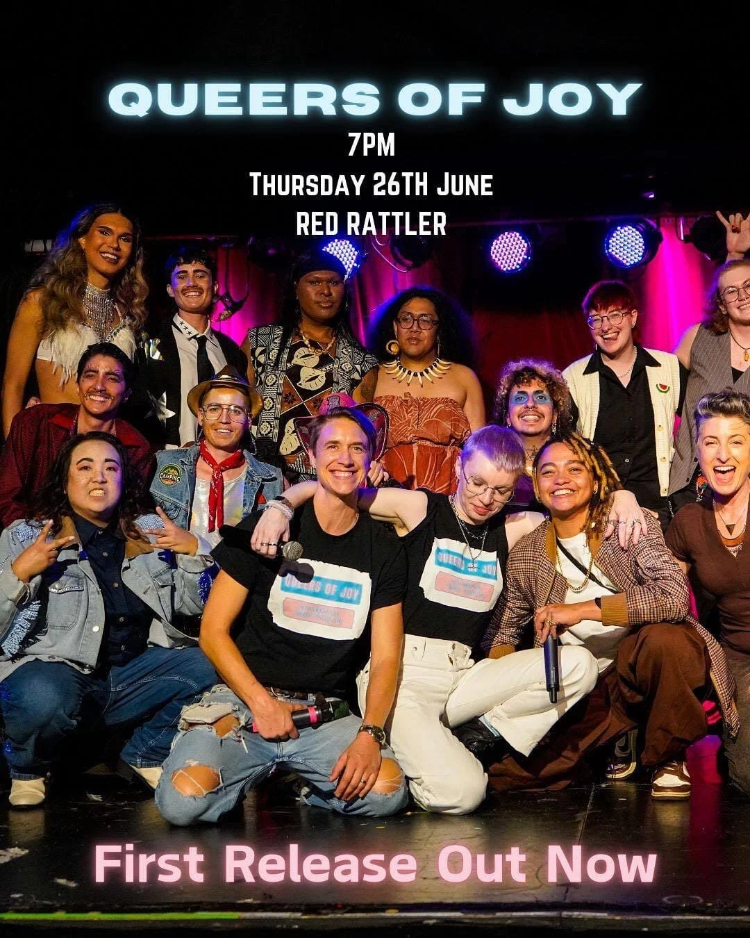 After a sold out April show, we're thrilled to be back with another beautiful night of trans joy, vitality and excellence! With a carefully curated line-up and a focus on community, all in the iconic Red Rattler Theatre, Queers of Joy is the place in Sydney for trans and gender diverse representation and solidarity. Can't wait!